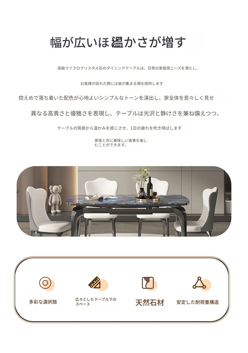 1.5Mブルージェイド微結晶石伸縮ダイニングテーブル+雲の椅子*4