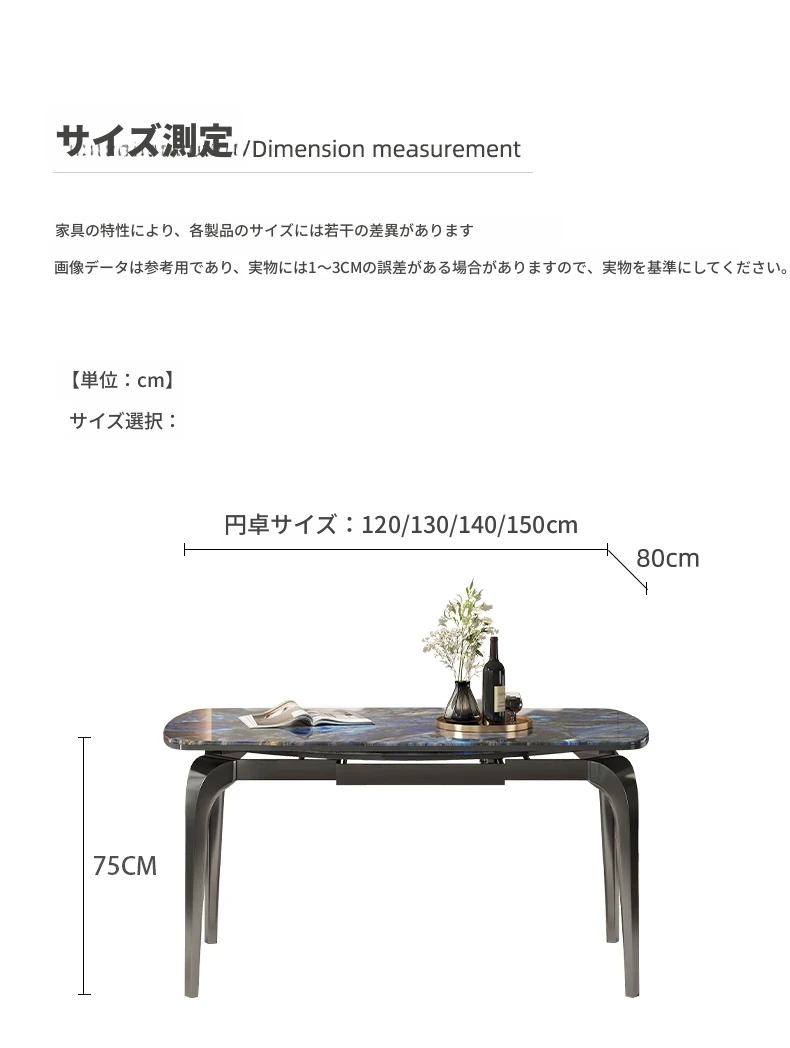 1.2Mブルージェイド微結晶石伸縮ダイニングテーブル