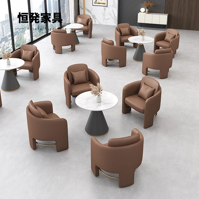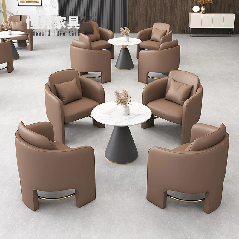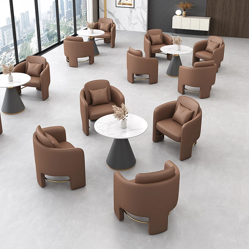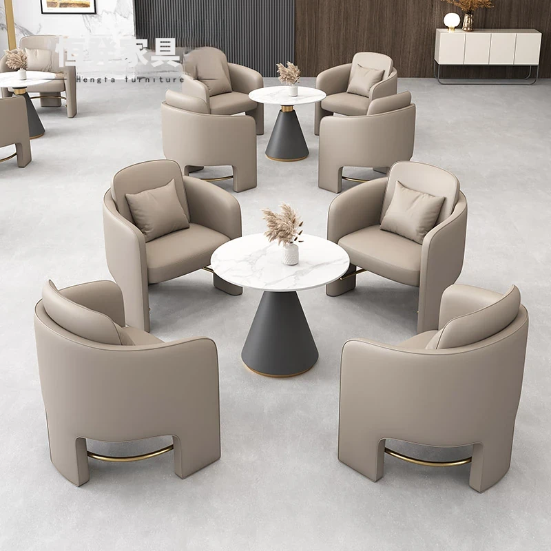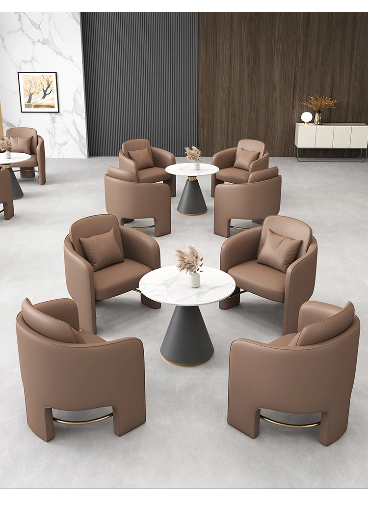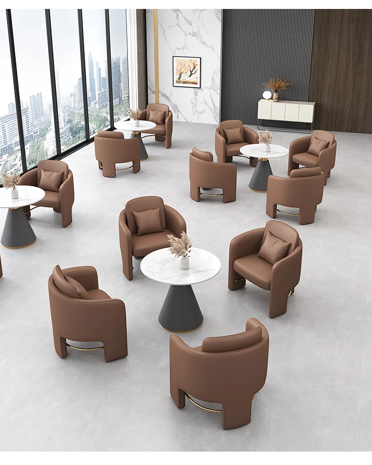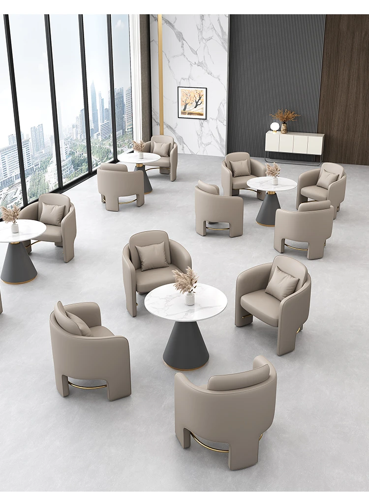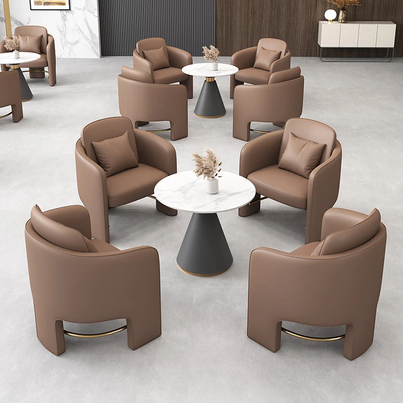 不動産販売所に最適!快適な休憩エリアを演出する4脚付き小丸テーブルセット。ホテルの商談や接客にぴったりな洽談テーブル&椅子のコンビネーション。おしゃれで機能的、ビジネスシーンをサポートします!