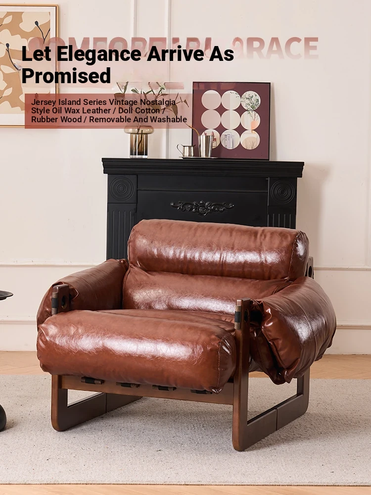 Vintage Jersey Island Chair - Retro Style Solid Wood Lounge Chair for Home Living Room, Designer Single Sofa, Perfect for Relaxation and Aesthetic Appeal