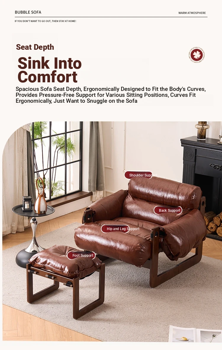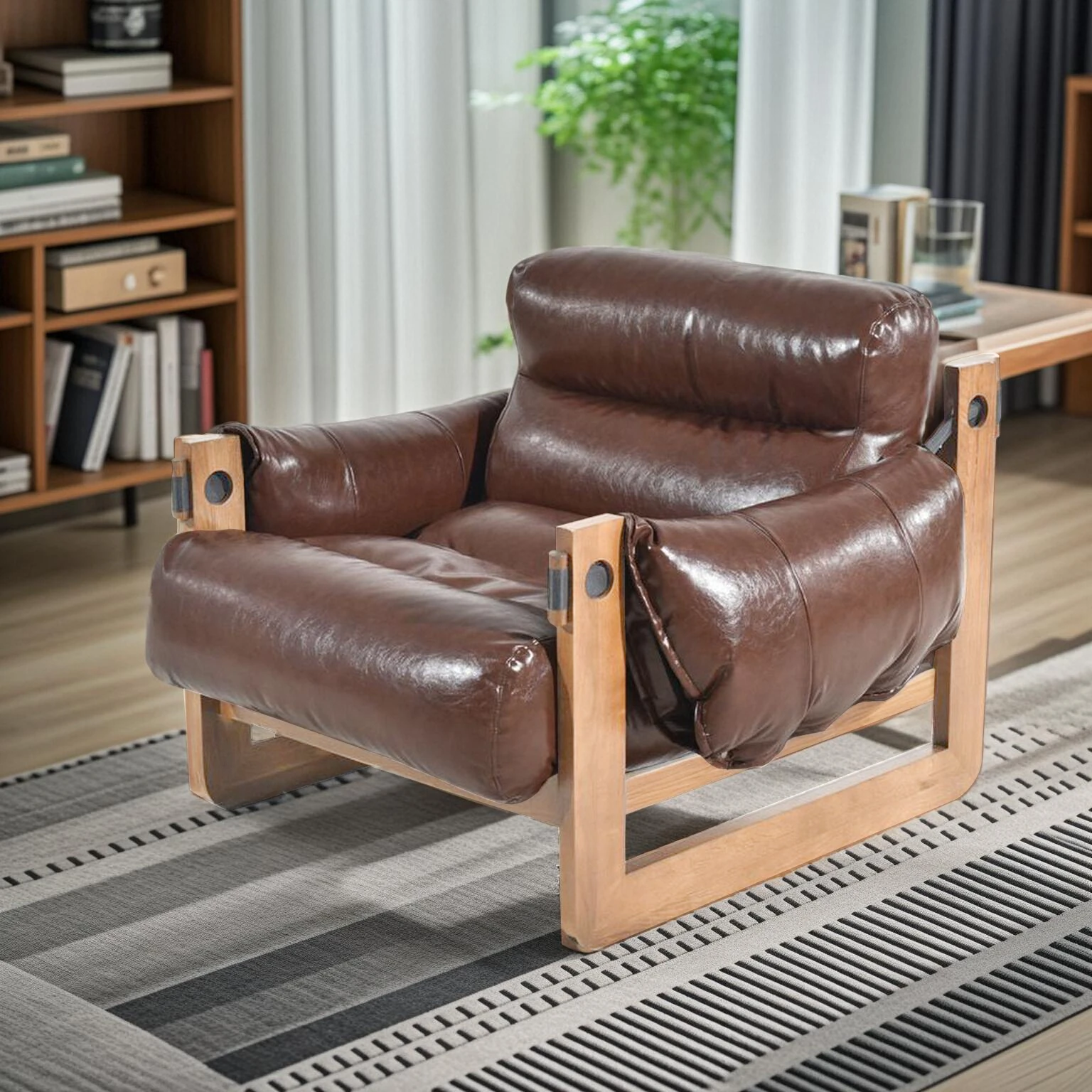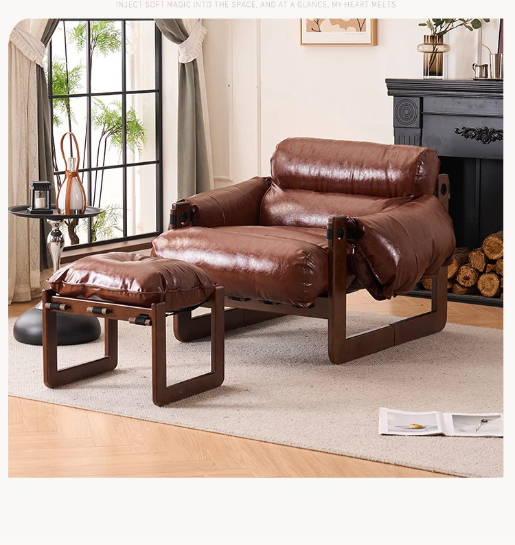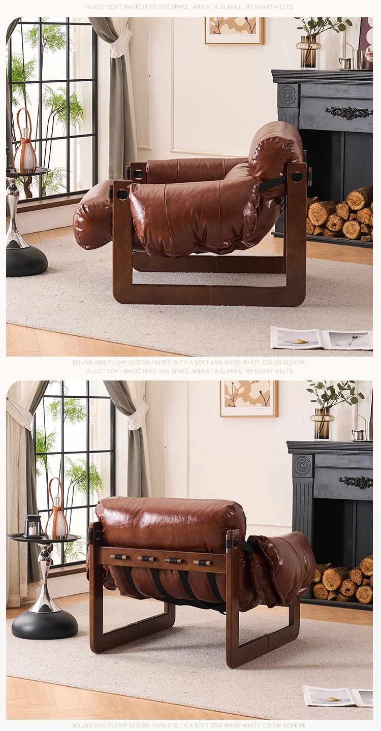 Walnut color frame-Brown ecological leather