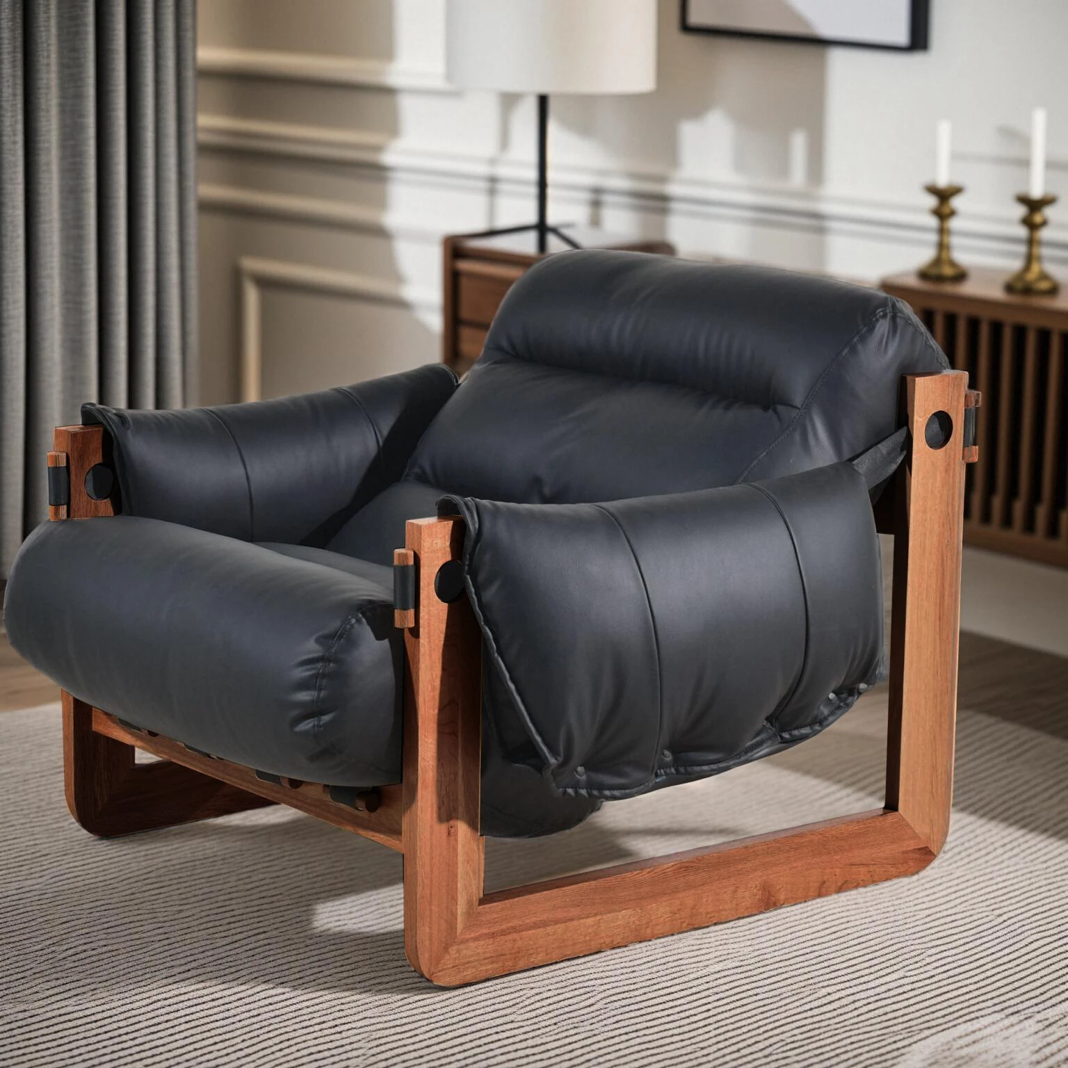 Walnut color frame-black ecological leather