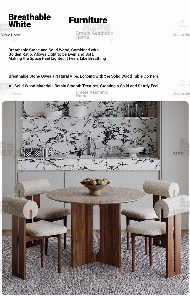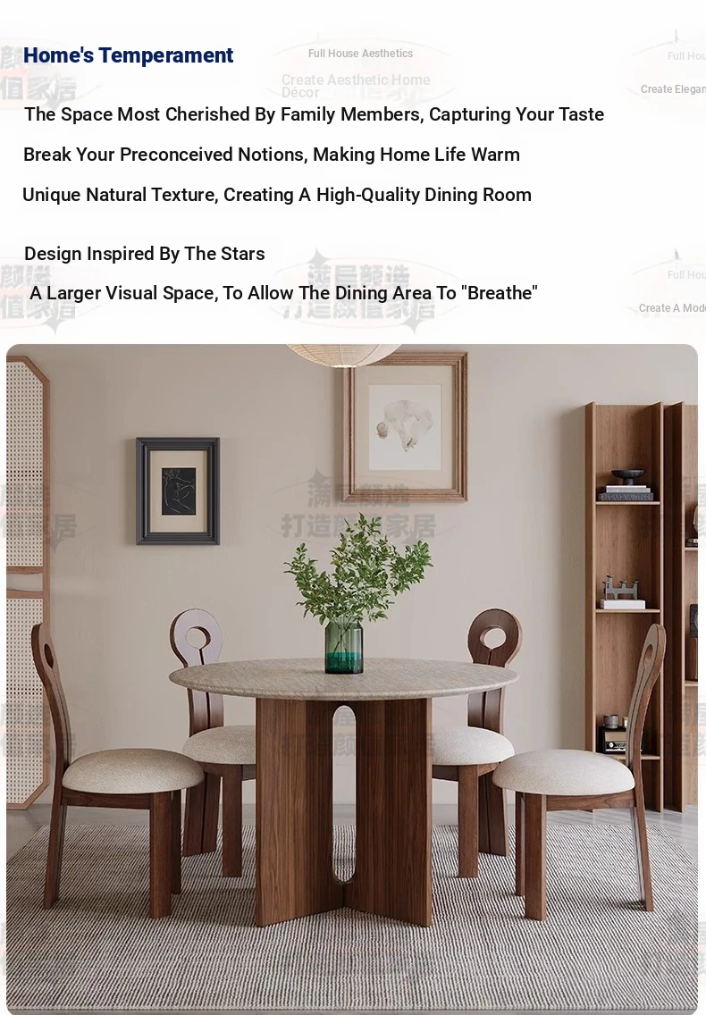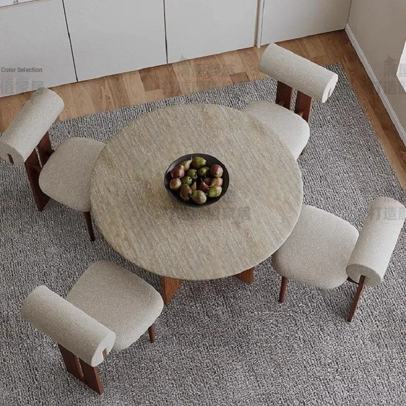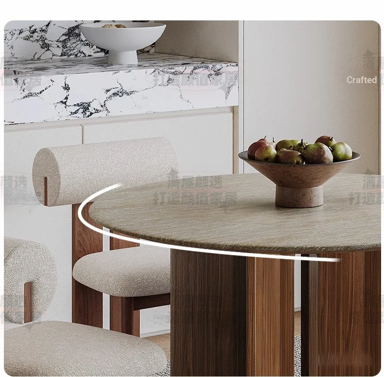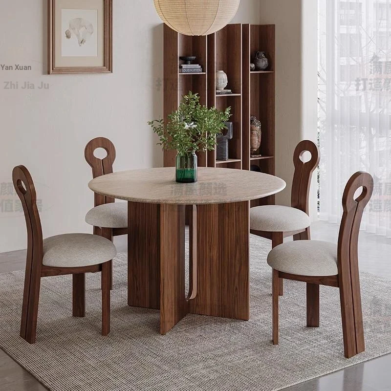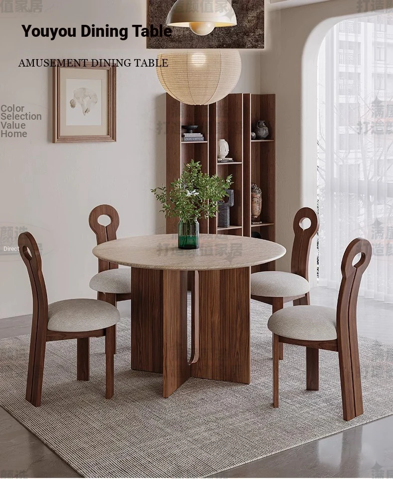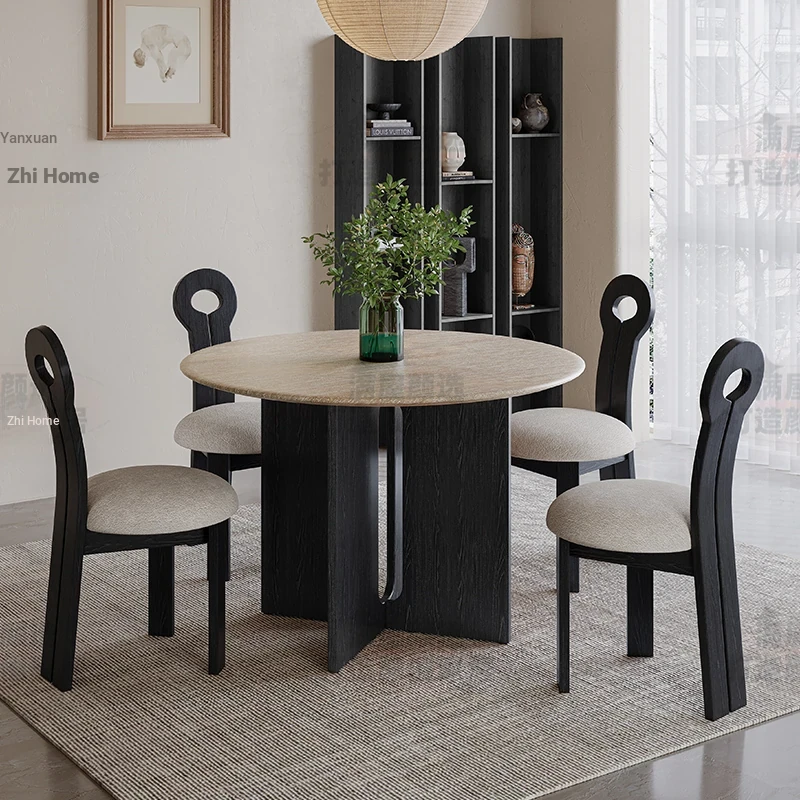 Vintage Round Hole Stone Dining Table - Rustic Solid Wood Dining Table for Small Spaces - Wabi-Sabi Style Marble Table for Living Room and Restaurant