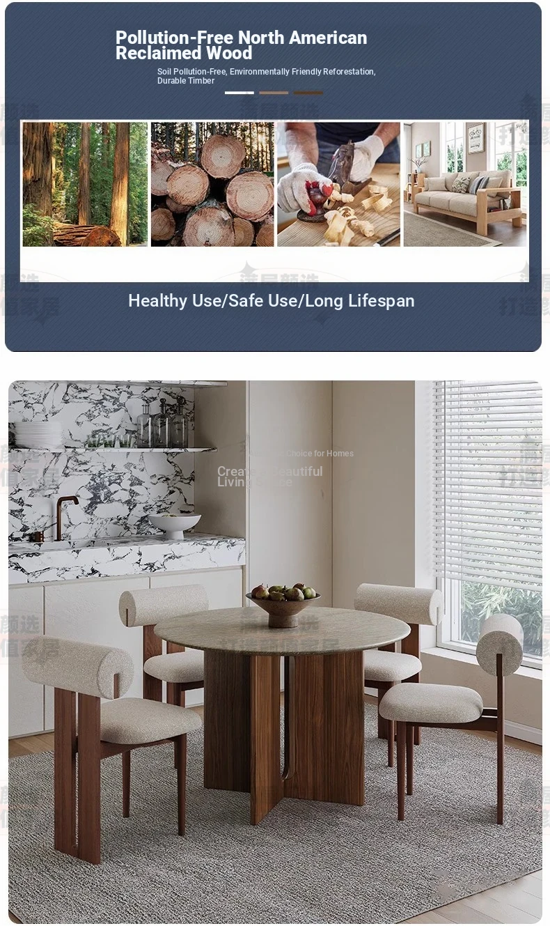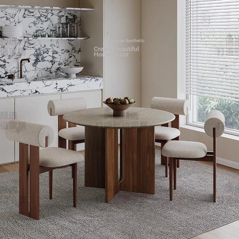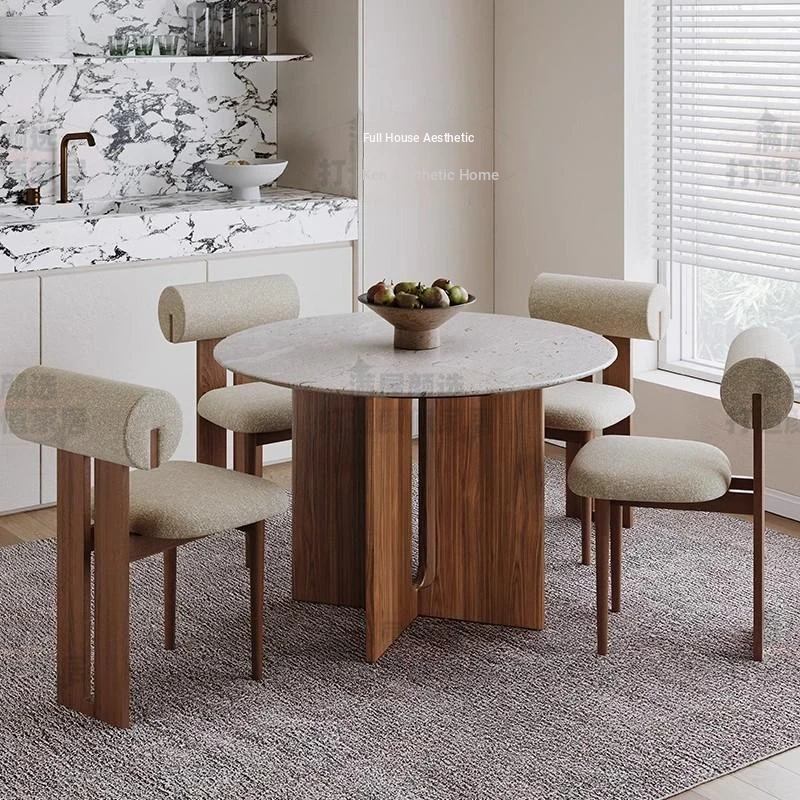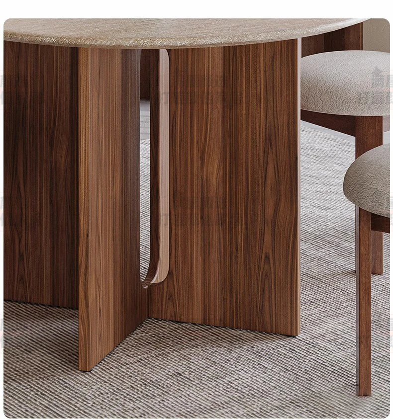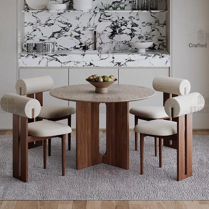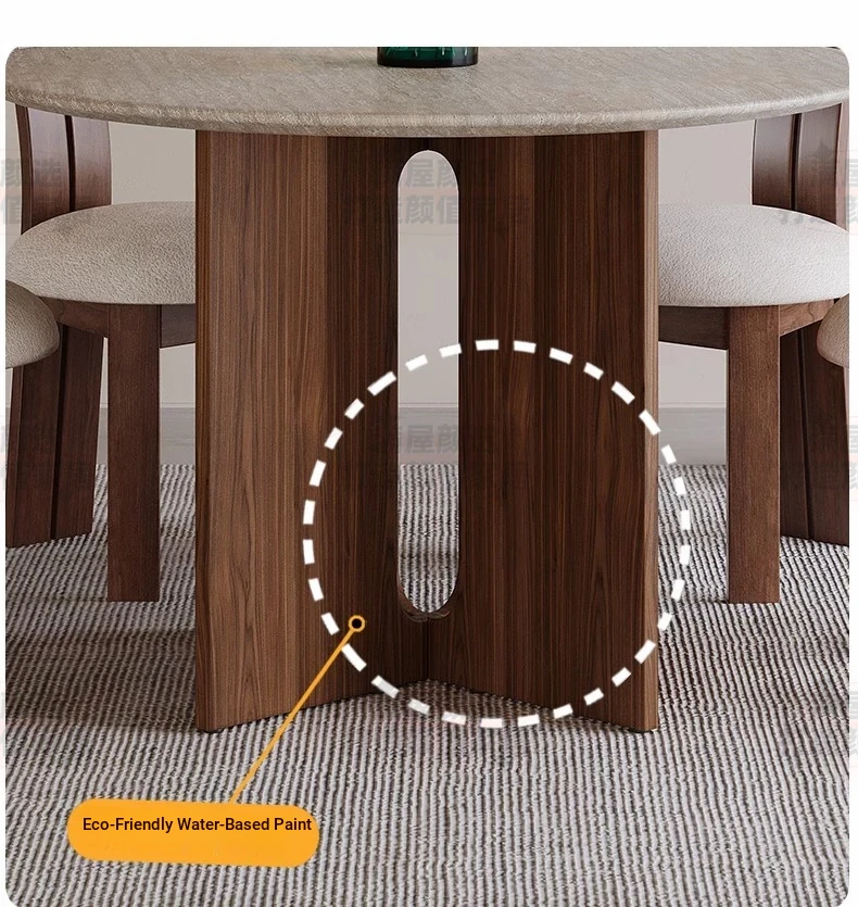 Vintage Round Hole Stone Dining Table - Rustic Solid Wood Dining Table for Small Spaces - Wabi-Sabi Style Marble Table for Living Room and Restaurant