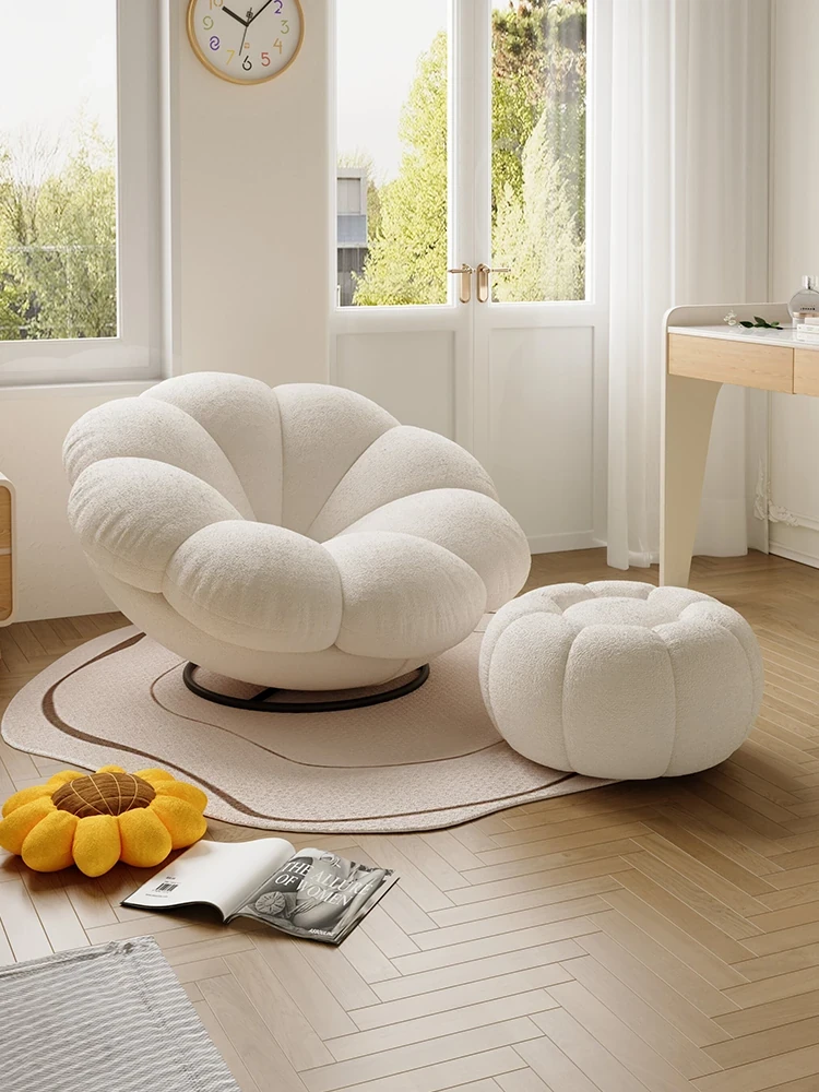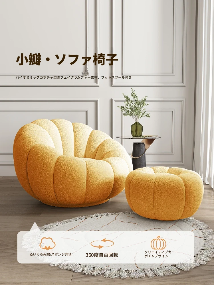 リラックスできる花びらソファ - 羊毛フリース素材のシンプルでモダンなデザイン!寝室やバルコニーにぴったりの回転可能な小さなソファ椅子。南瓜の形がかわいらしく、家庭用のリビングに最適です!