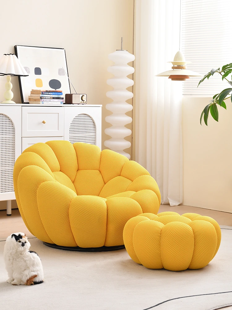 リラックスできる南瓜型ソファ|主寝室にも最適!寝転んだり、くつろいだりできる小さなソファ。リビングや狭いスペースにピッタリの回転式1人用ソファチェアです。快適なひとときをお楽しみください!
