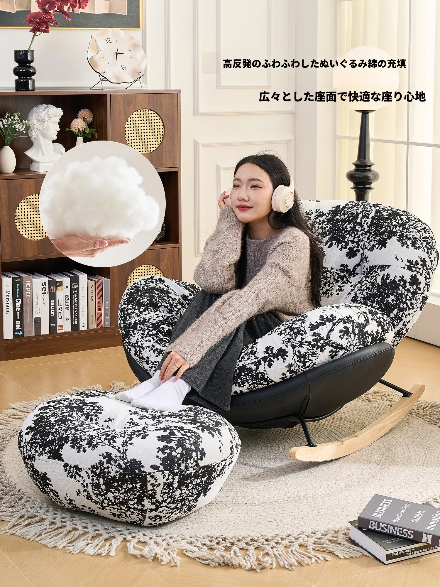 レトロ風のラウンジチェア、リラックスしたい方に最適な卵型ロッキングチェア!リビングやバルコニーにぴったりの一人用ソファ。快適さとスタイルを兼ね備えた、あなたのくつろぎ空間を演出します!