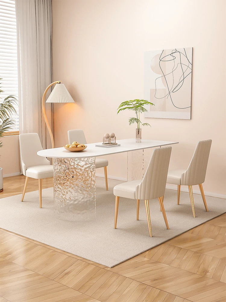 天然ミクロクリスタルストーンダイニングテーブル - ラグジュアリーな新デザイン!小型住宅に最適な高級感あふれる長方形大理石製の食卓で、素敵な食事のひとときを演出します。