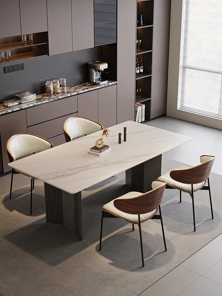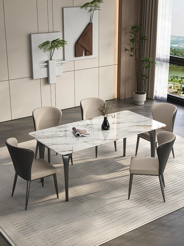 イタリアンラグジュアリー・スラブスタイルのダイニングテーブル&チェアセット - モダンなミニマリズムで小スペースに最適な長方形テーブル!スタイリッシュな家のアクセントにどうぞ。