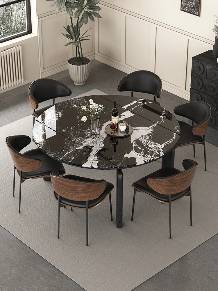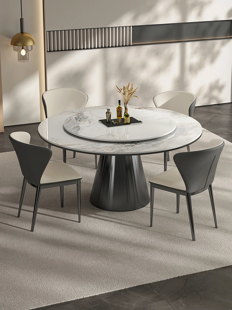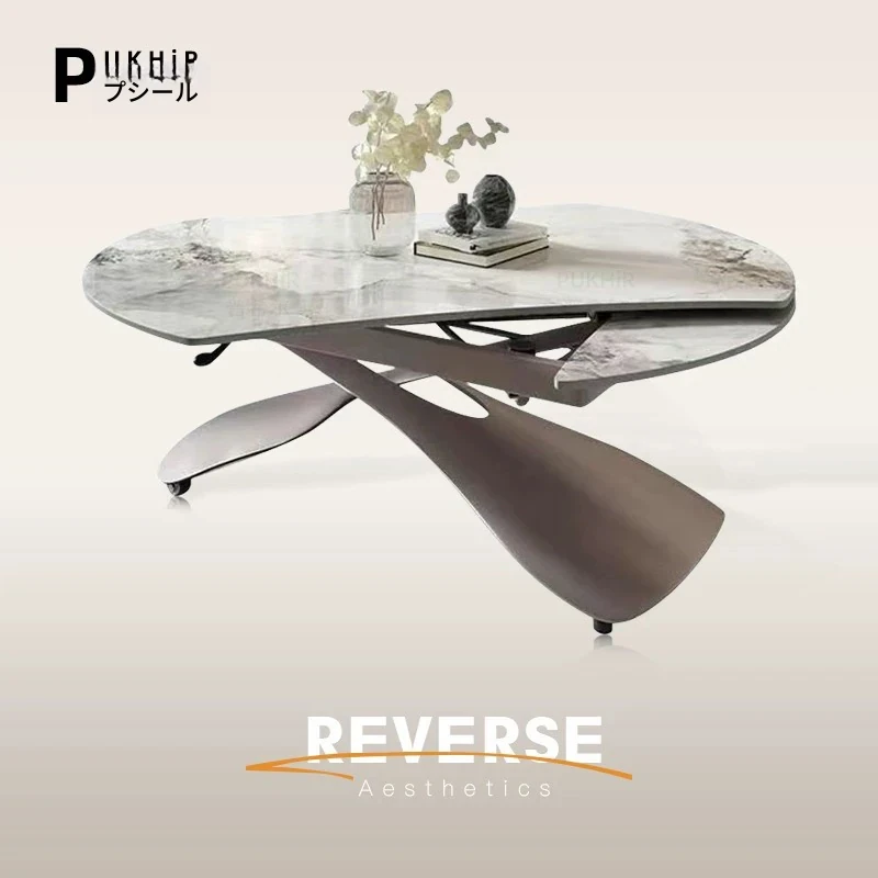 昇降式ティーテーブル&ダイニングテーブル一体型!スタイリッシュな岩板デザイン、現代の小型住宅に最適。多機能な丸型テーブルで、くつろぎのひと時をお楽しみください!