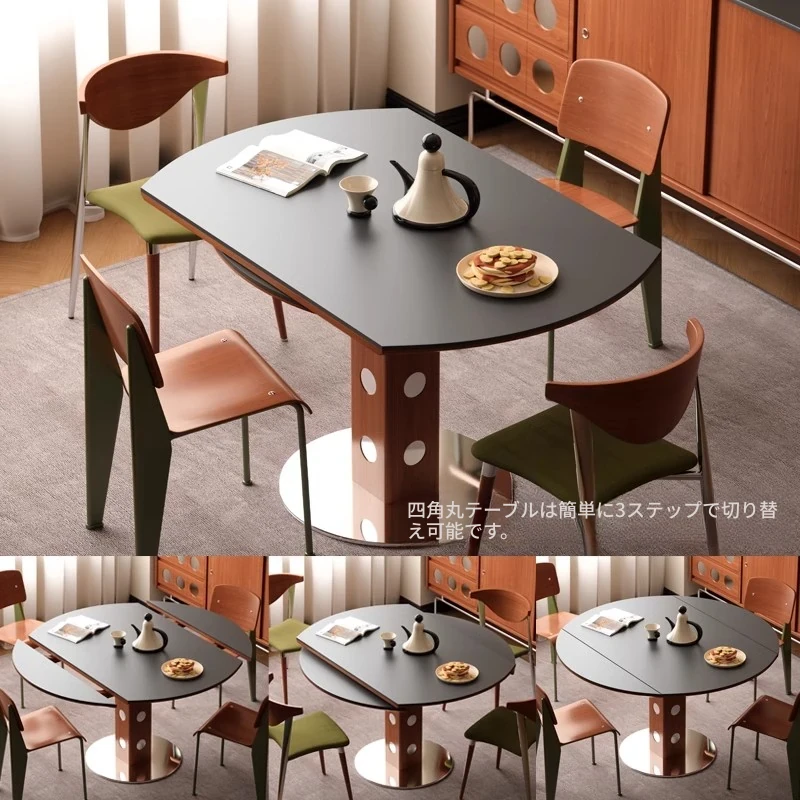 北米産ブラックウォールナット無垢材使用の伸縮式ロックボードダイニングテーブルセット - おしゃれで実用的な折りたたみ式、四角・丸両用。軽やかな贅沢感でお部屋を彩る!