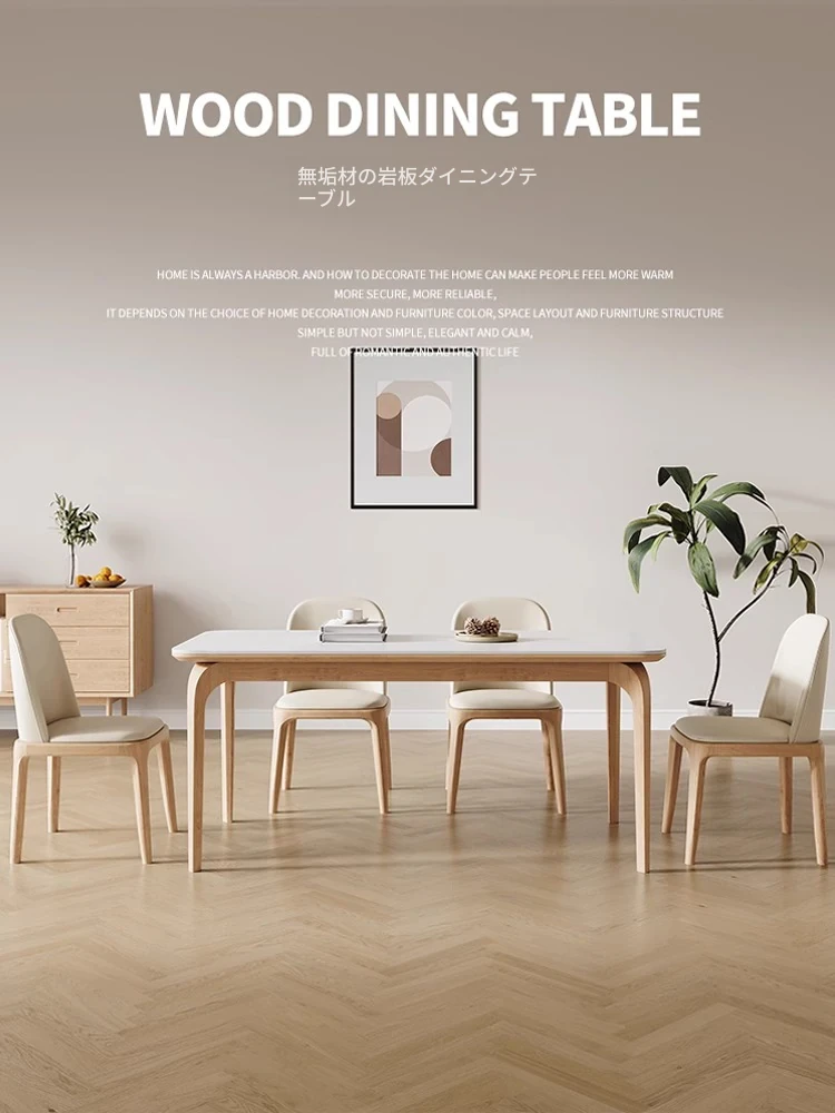 北欧スタイルの無垢材ロックプレートダイニングテーブル&チェアセット|天然木の温もりを感じる現代的なシンプルデザイン|小さな家にもぴったりな長方形テーブルで、食事の時間をもっと特別に!