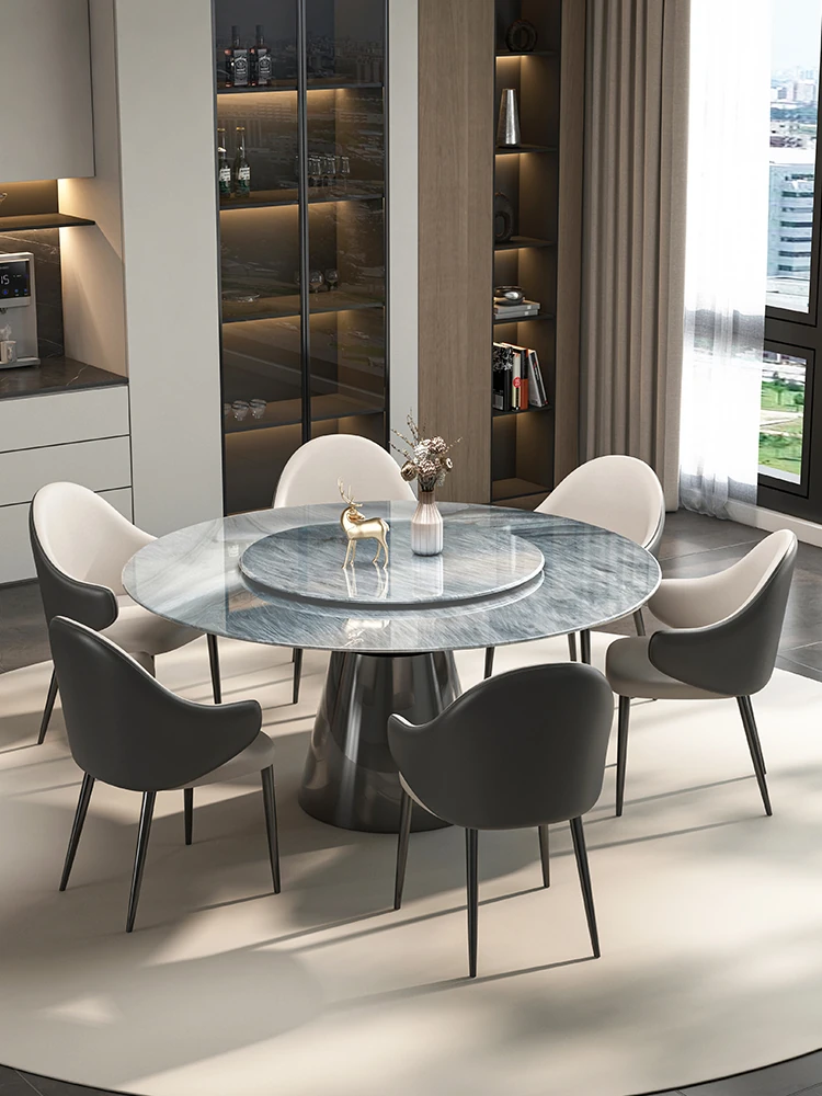 天然ミクロクリスタル石製の円形テーブル 新作イタリアンライトラグジュアリー高級感ダイニングテーブル 家庭用大理石モダンミニマリストスタイルのテーブルと椅子セット