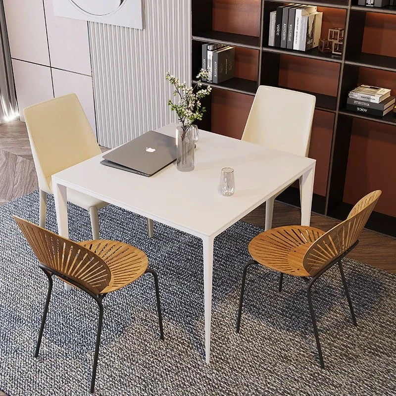 モダンシンプルな光沢仕上げの石板製スクエアダイニングテーブル - 小型家庭向け北欧スタイルのリラックス会話テーブル、デザイナーによる洗練されたデザイン!