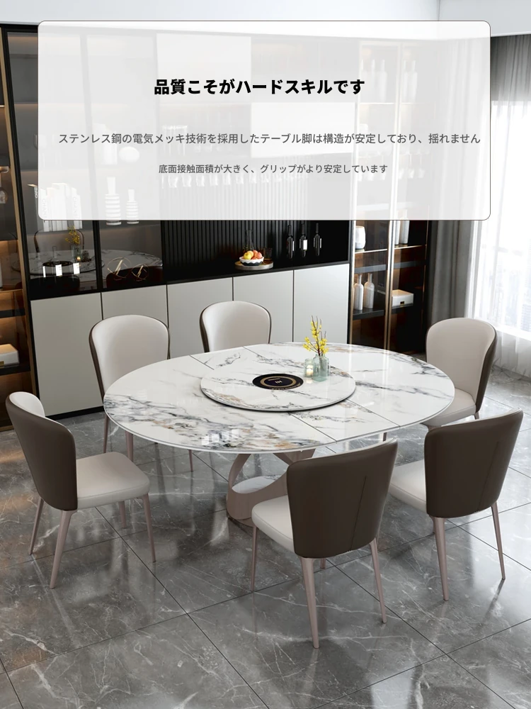 高級感溢れる円形ダイニングテーブルセット - モダンでシンプルなイタリアンデザイン、回転式天板付きのスタイリッシュな食卓椅子コンビネーション。家庭にぴったりの洗練された空間を演出します!